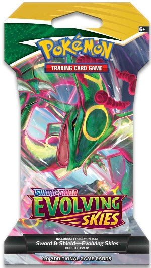 Each Sword & Shield—Evolving Skies sleeved booster pack contains 10 random cards.